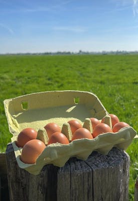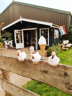 Unser 'Melkhuisje' (Milchhütte) hat sich erweitert. Neben der Milchmaschine wurde eine Käse- und Eiermaschine hinzugefügt! Neben frischer Milch werden auch Bauernkäse, Butter und Eier aus Freilandhaltung verkauft.