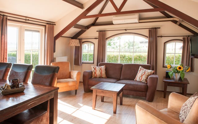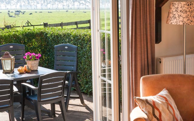 Gemütliche Stunden vor dem Kaminofen, eine herrliche Aussicht… was will man mehr!Zum Schlafen gibt es hier einen Alkoven mit Polderblick, sowie 1 Zimmer mit Etagenbett und 1 Zimmer mit zwei Einzelbetten. Auf der großen Terrasse bietet sich Ihnen eine echt holländische Aussicht. Machen Sie es sich bequem mit drahtlosem Internet und Flatscreen-TV. Und selbstverständlich können Sie direkt neben dem Haus parken.