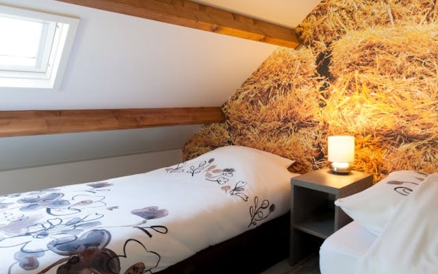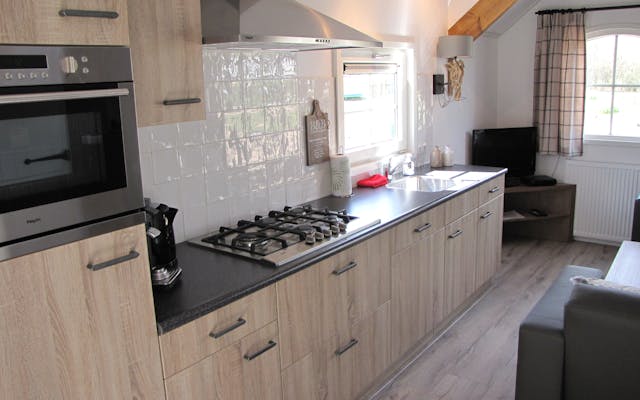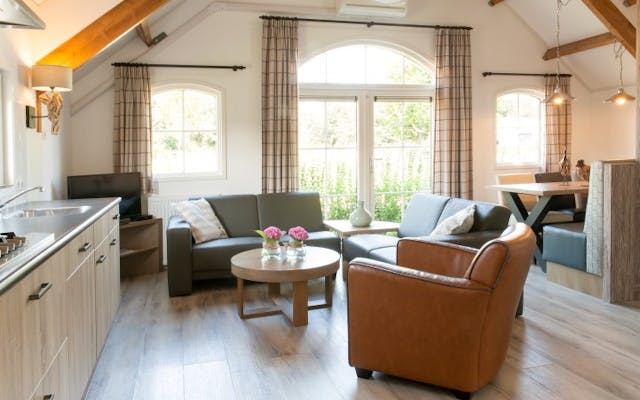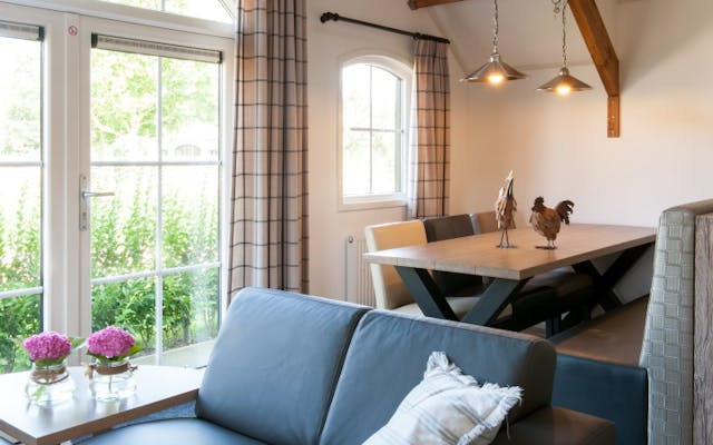 The luxury Boerenhuis (Farmhouse) accommodates up to 7 guests and has a cosy living room with French windows opening onto a good size terrace. It furthermore has a digital flatscreen television, a DVD-player, air conditioning, and wireless internet (WiFi). The open-plan kitchen is fully equipped with, for example, a gas cooker, a dishwasher and a combi microwave oven.